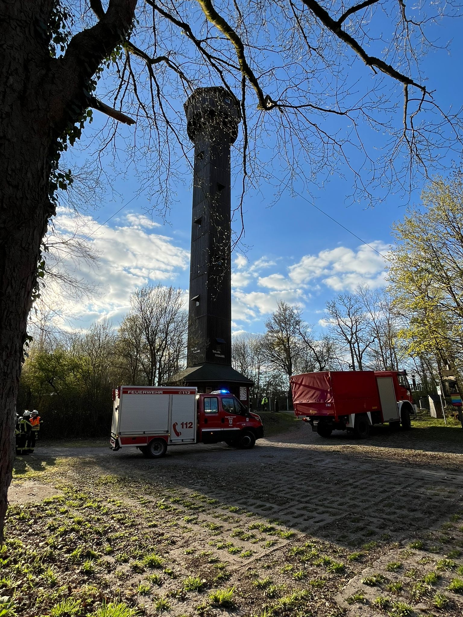 Das Übungsgelände wurde dankenswerterweise von der Interessengemeinschaft Heldrastein zur Verfügung gestellt. Schnell zeigte sich, dass das Objekt besondere Anforderungen an die Einsatzkräfte stellt: Die steile und enge Treppenanlage des Turms erschwerte die Rettungsmaßnahmen erheblich. Insbesondere unter schwerem Atemschutz waren die Kameradinnen und Kameraden körperlich stark gefordert, da sowohl der Aufstieg als auch die Rettung der Vermissten höchste Konzentration und Ausdauer verlangten.